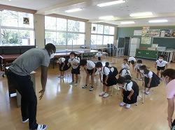 1・2年生は、英語の歌と踊り、色の勉強をしました。「Head,Shoulders,Knees And Toes」の歌に合わせて手を動かしますが、だんだんと早くなる歌に、子どもたちも大忙しでした。