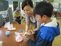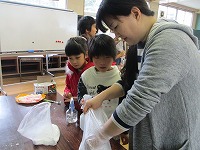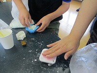 まずは袋に入れてこねます。なかなか固まるのが難しかったようです。