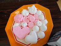 こねたら、型(ハートやドラえもんやリラックマなど)に入れて・・