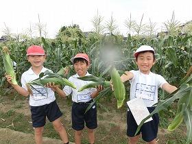 おみやげに新鮮なとうもろこしをいただき、みんな、とても喜んでいました。