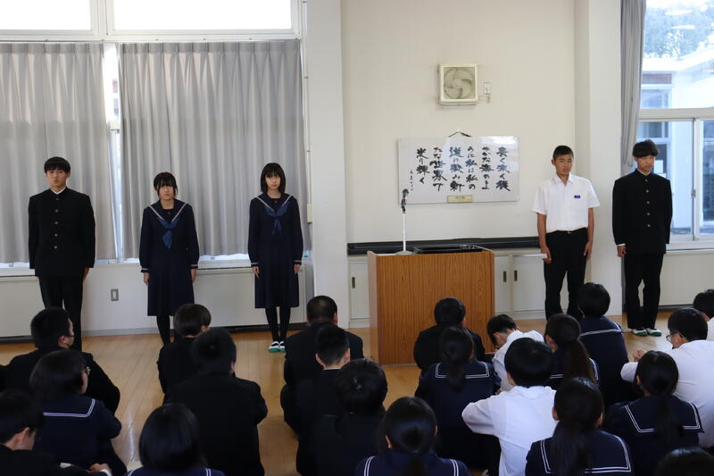 10月10日(金)、前期終業式の引き続き、中体連駅伝選手推戴式(中学生)を行いました。