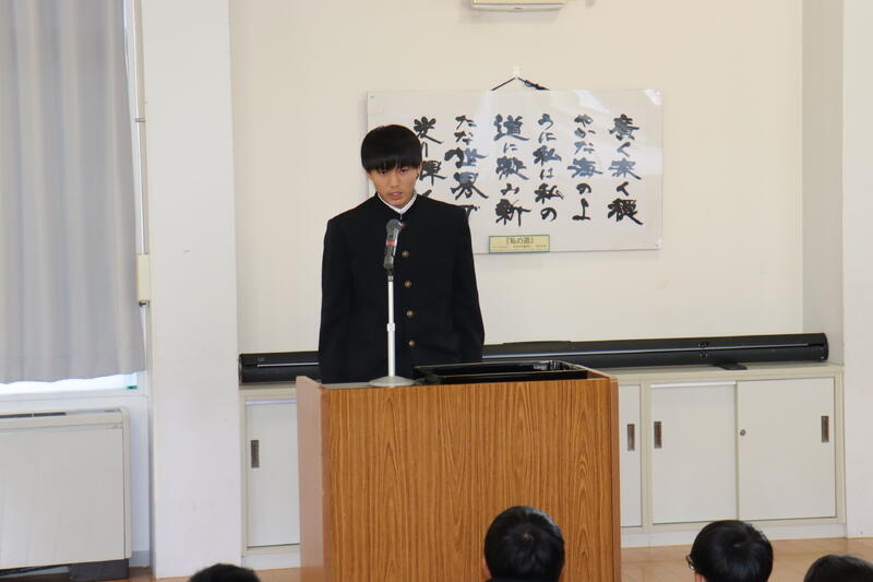 新生徒会役員への任命書授与の後、新生徒会長からの決意表明がありました。