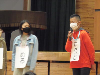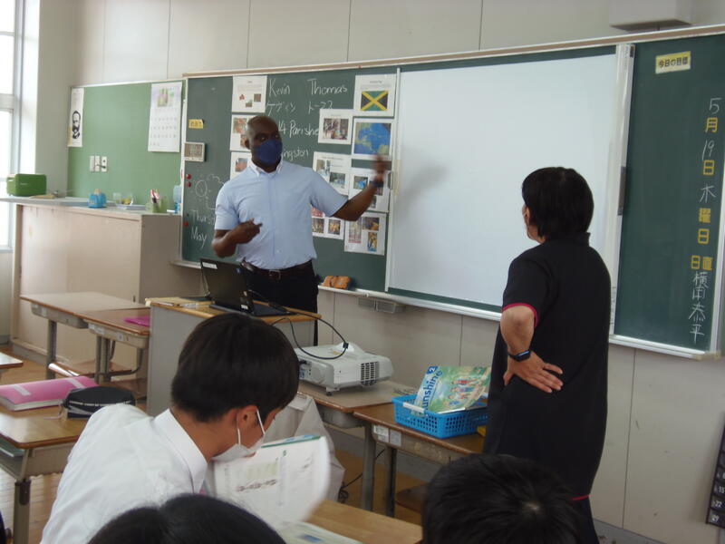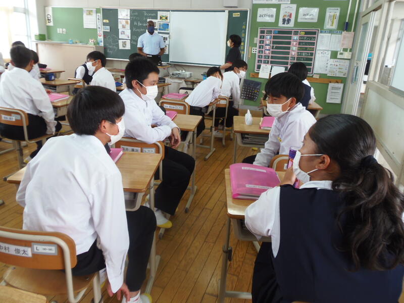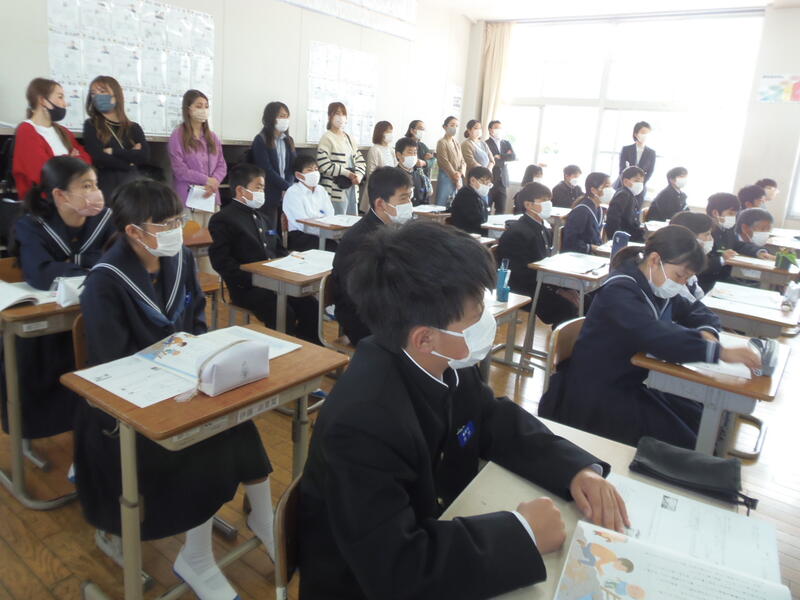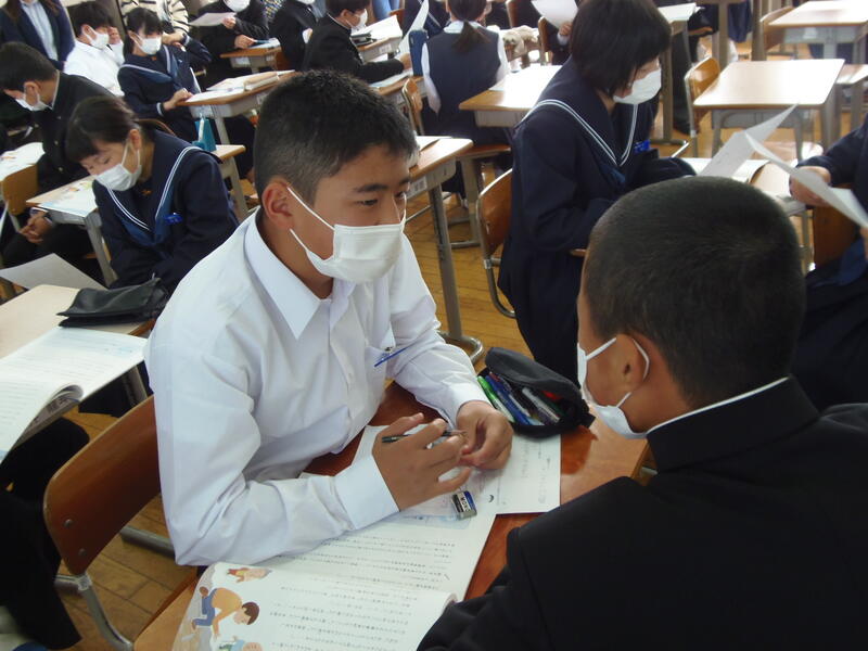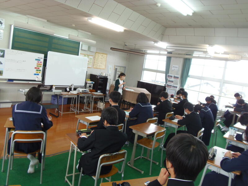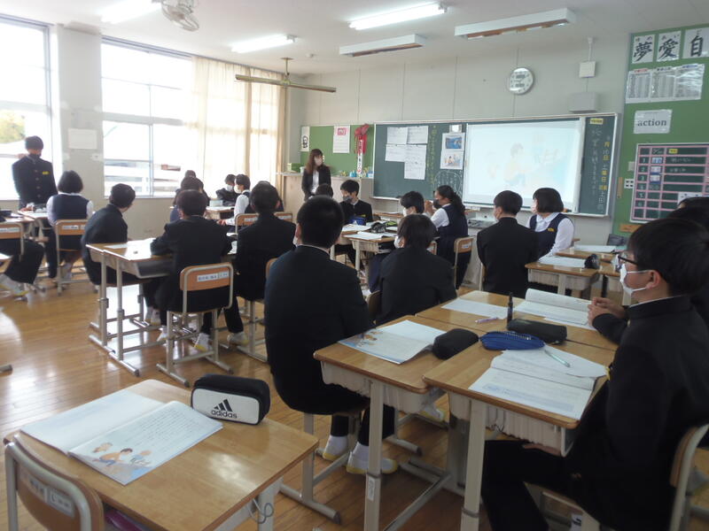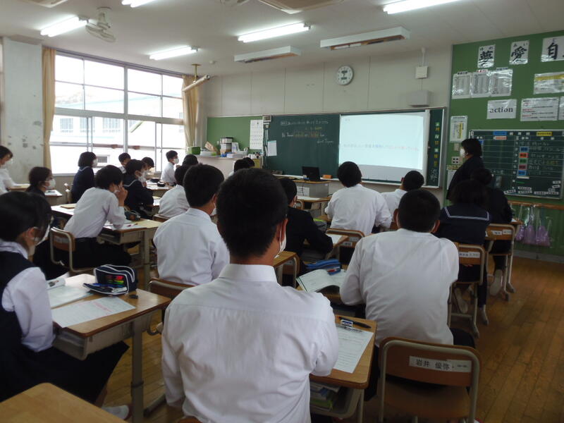 中学2年生は、英語の授業でした。前時の学習内容を確認していました。先生の質問に反応していました。