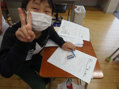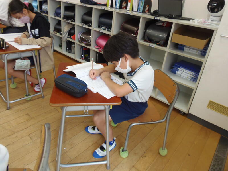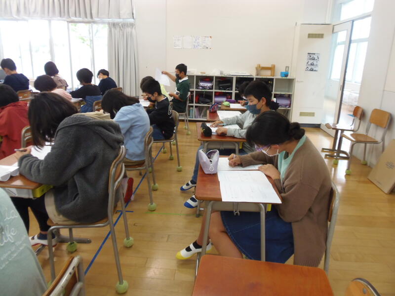 確認テストに取り組んでいました。問題をよく読み丁寧に取り組んでいました。