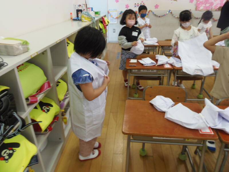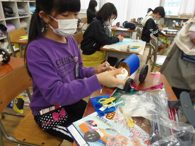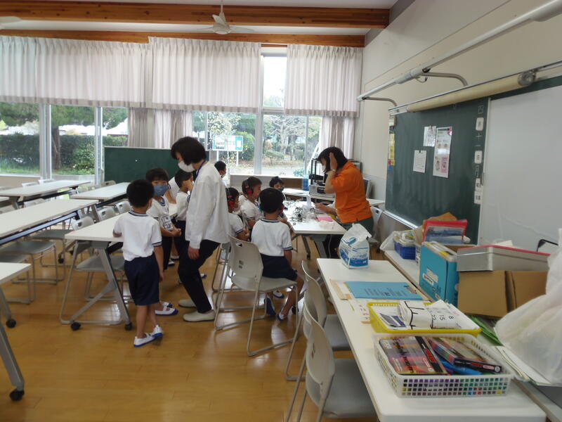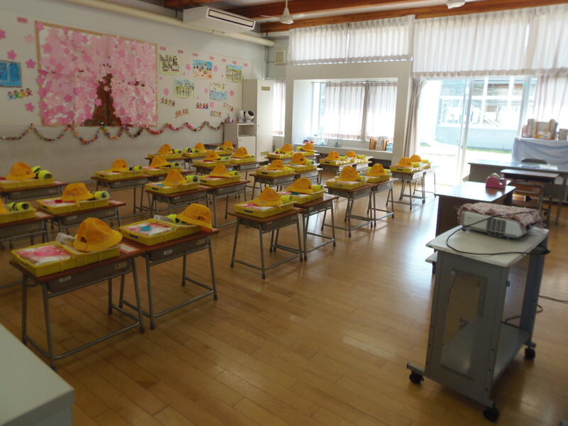 小学1年生は、作品を作っていました。色とりどりで個性的な作品が多かったです。