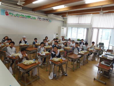 学校では、給食委員会による取組や給食の灰瀬先生による食育の授業を予定しています。