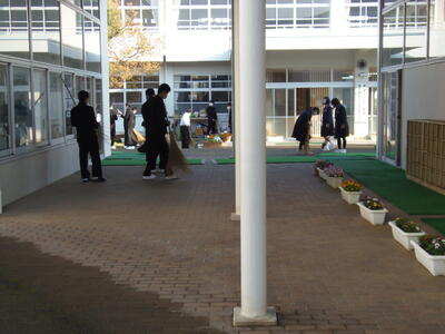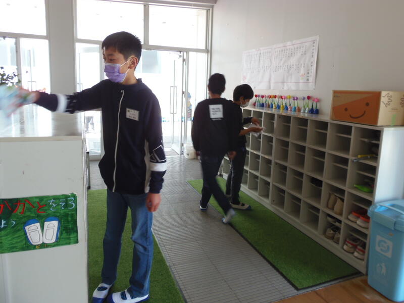 中学校生徒会執行部と小学校運営委員の子どもたちが朝早くから頑張ってくれました。
