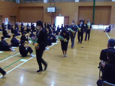 今日は、証書授与の動きの確認がありました。友達と受け渡しの練習に繰り返し取り組んでいました。