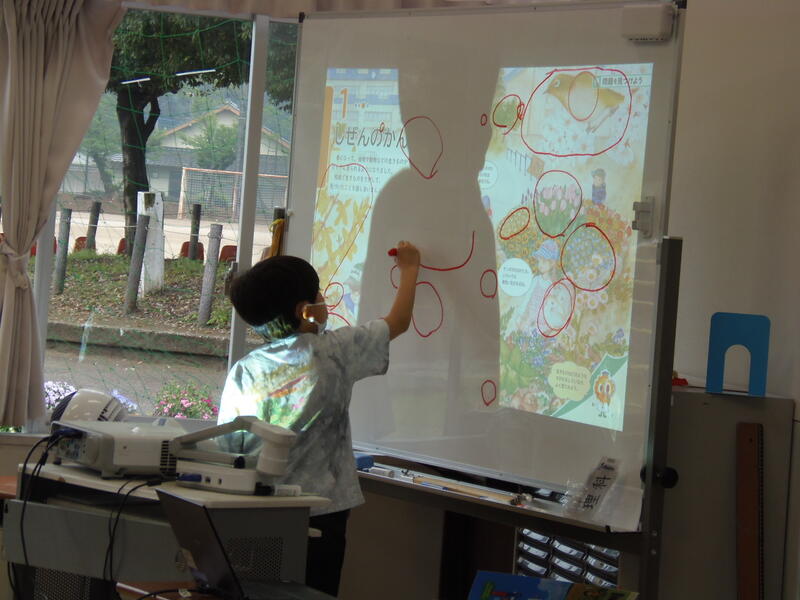 電子教科書を使い、主人公の朝の行動を自分と比べました。