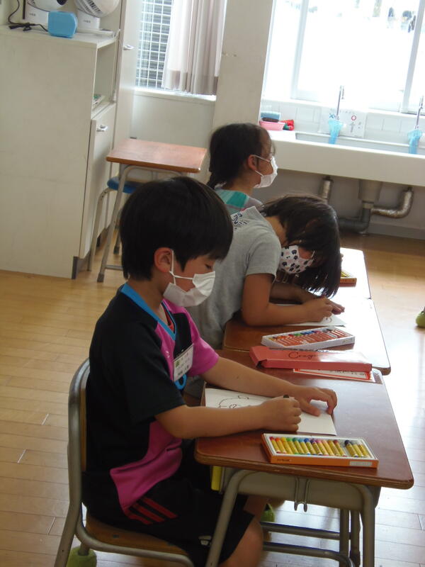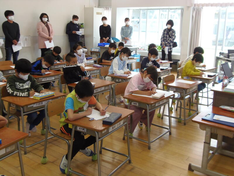 担任の先生が、書き方の見本を示したあと、子どもたちも集中して書き出しました。