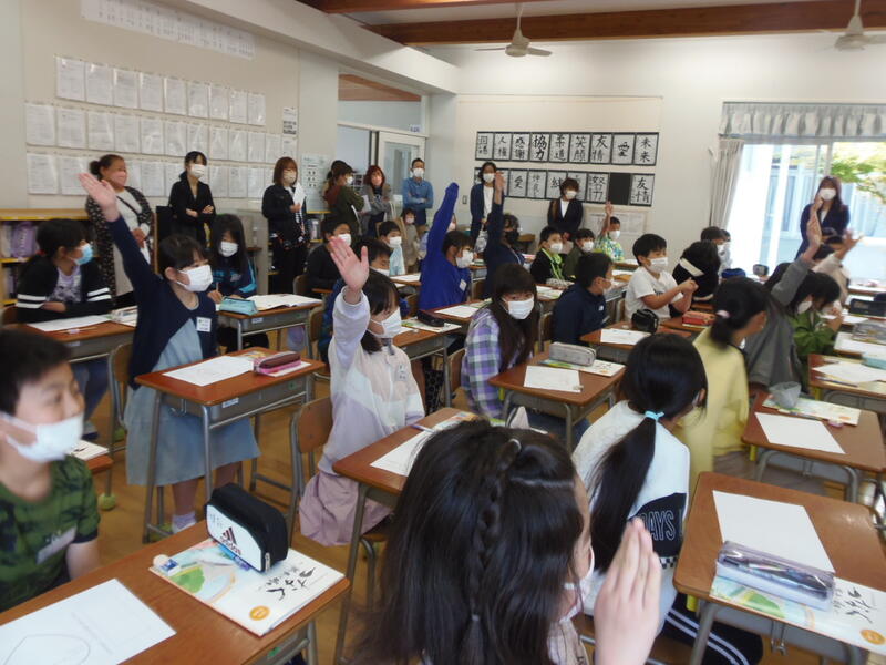 宇城市教育委員会の審議員をお迎えし、小学3年生が算数の研究授業を行いました。先生と子どもたちとのやり取りが温かく、最後まで集中して取り組んでいました。