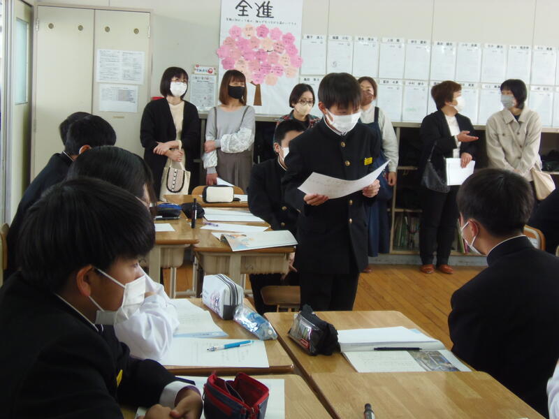 中学3年生は、社会の授業でした。さすが受験生!集中力が違います。先生の発問にもしっかり答えていました。