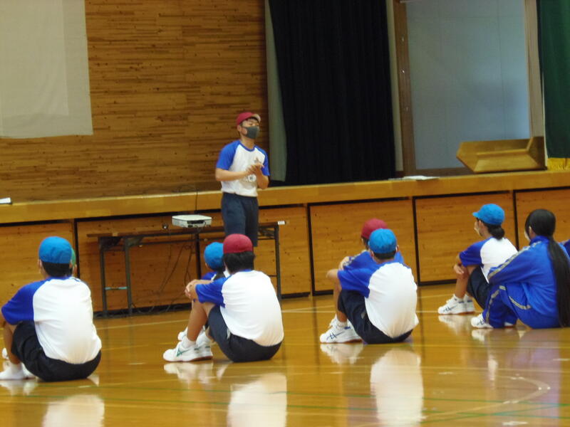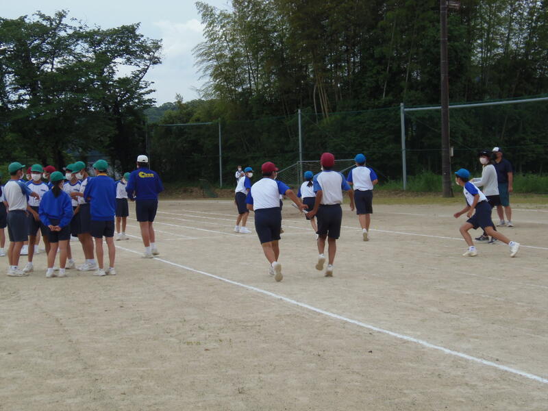 走順を確認し、チームごとにバトンパスの練習をしました。