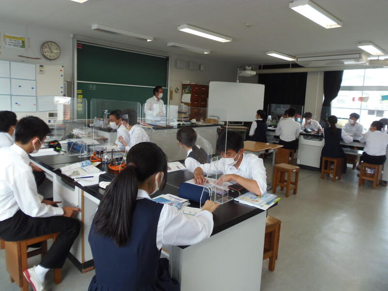 中学1年生は、理科の授業に取り組んでいました。先生の説明をよく聞き、ノートを真剣に取っていました。