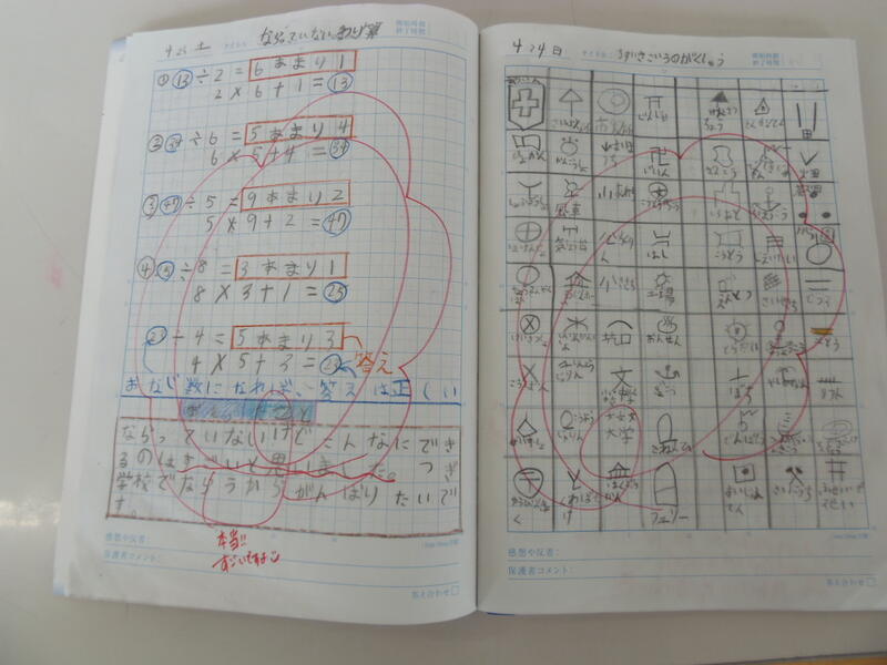 初めての昼休み、初めての5時間目。みんな頑張りました。