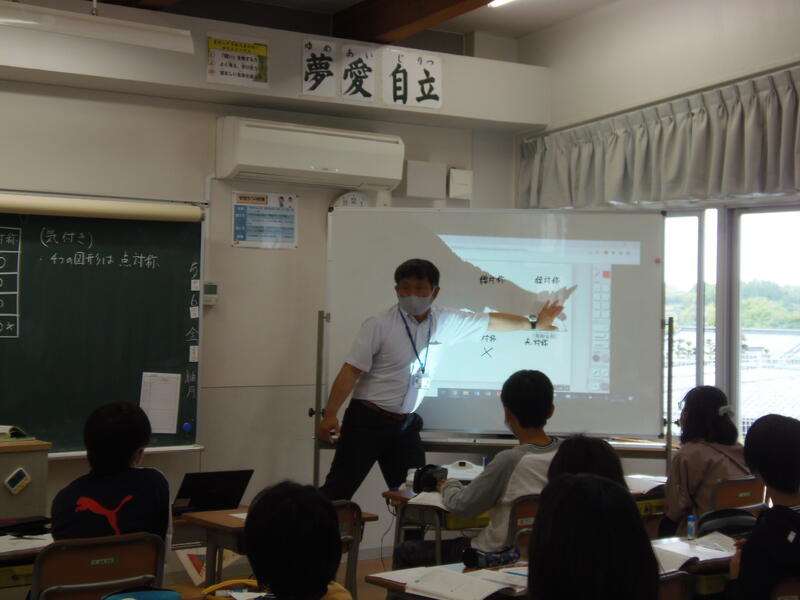 中学1年生は、習字をしていました。先生の話をよく聞き、ポイントを整理して書き出していました。
