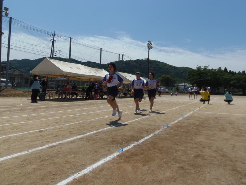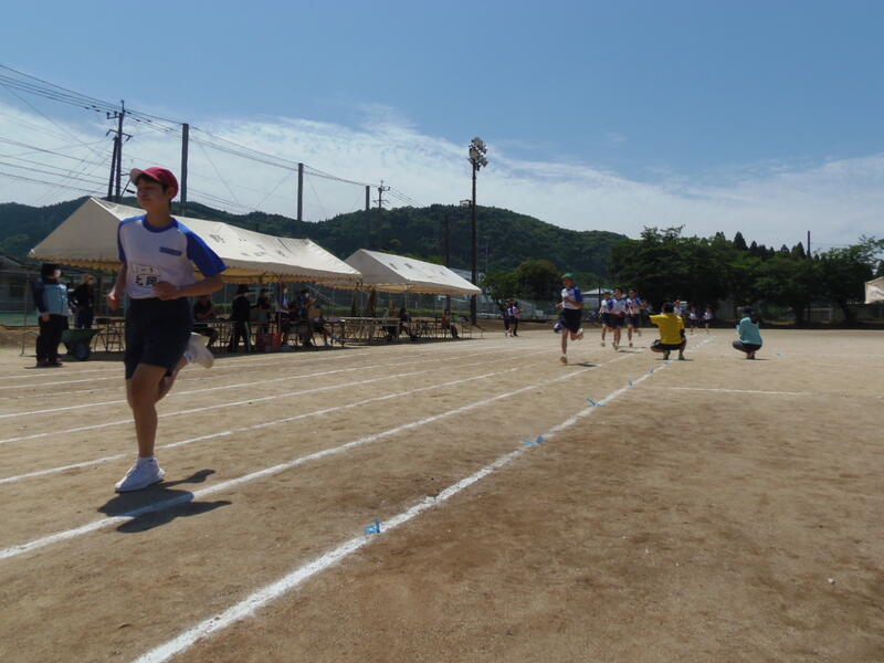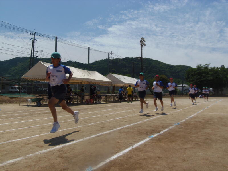 予行練習の中で、プレ運動会として、中学生選抜選手による長距離走(男子1500m、女子800m)を行いました。さすが中学生、力強い走りで素晴らしかったです。