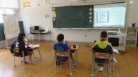 ↓ 小学5年生は、算数の授業で、解いた問題を友達が採点し、その後、一緒に解き方を確認していました。それぞれの場所で、真剣に勉強していました。