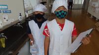 先生たちに聞きながら食器やおかずの置いてある場所を覚えています。