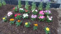 ↓ また、来客用駐車場の花壇に花が植えられています。きれいに咲いています。