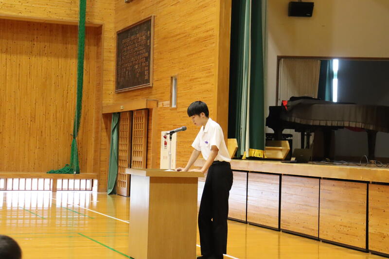 副校長の話のあと、児童生徒の代表各1名が前期の反省と後期の目標を発表しました。