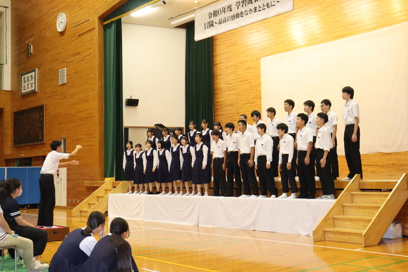 その後、合唱コンクールを行い、小学6年生から順に発表しました。最後は全員で「ふるさと」を合唱しました。