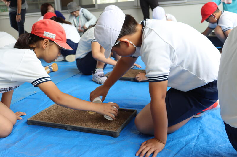 5月22日(水)の3,4校時に、5年生が種もみまきをしました。