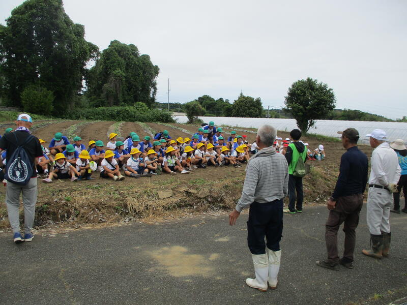 5月23日(木)の2,3校時に、小学1・2年生と中学1年生が合同で芋の苗植えをしました。