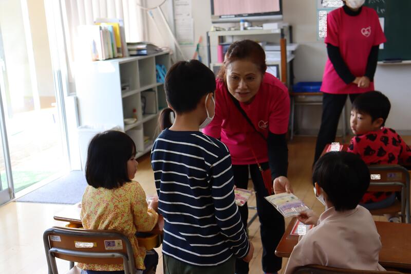 レクリエーションの後は、教室でお別れの会。みんな、大好きな教育実習生と別れがたいようでした。