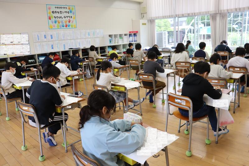 小学2年生から5年生まで、学力検査が行われました。みんな真剣です。がんばれ!