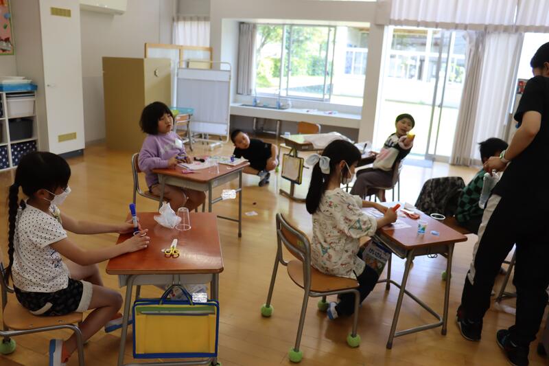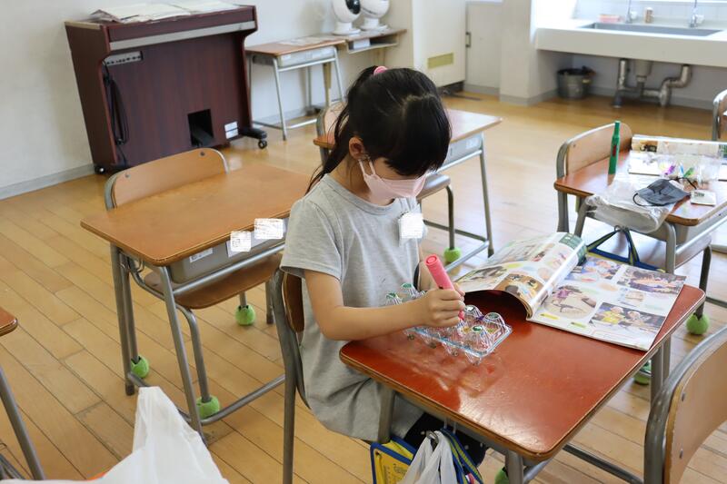小学2年生は、図工で、透明な容器に色を付け、おひさまの光をとおして遊んでいました。きれいな影にみんな大喜びでした。