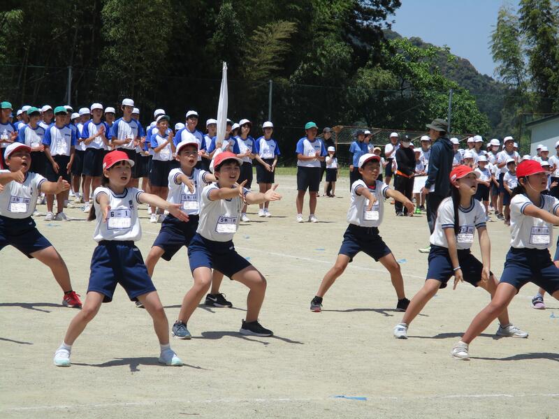 小学4年生は、運動会で踊るソーラン節の練習を始めていました。3年生のお手本になるために、がんばるぞー!