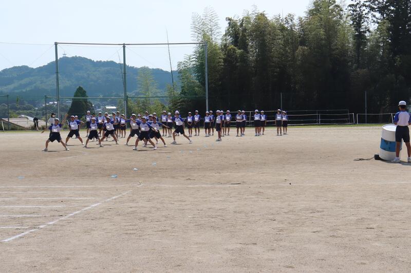 今日の中学生の運動会の練習の様子です。赤団、白団にわかれて、集団行動の練習をしています。