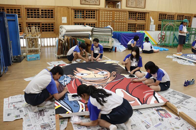 中学生は、午後の時間を使って、運動会の練習が本格的に始まりました。応援、集団行動、パネル、それぞれの係に分かれて、3年生を中心に準備を進めています。