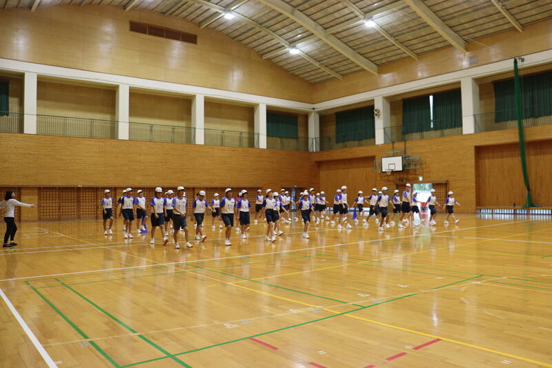 リーダーを中心に、練習が進んでいきます。やってみないとわからないこと、うまくいかないことも多々あるようですが、みんなで意見を出し合い、話し合いながら改善していく姿は、本当に頼もしい!初めからうなくいかないからこそ、それを乗り越えたときの喜び、達成感はより大きなものになることと思います。がんばれ、豊野中生!