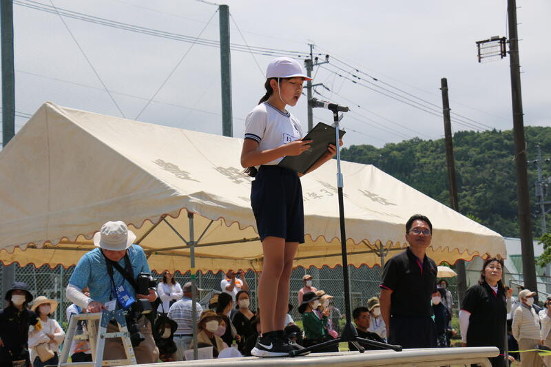 このあと、中学生は団ごとに、応援団員、集団行動リーダー、パネルリーダーを紹介し、それぞれの長が決意を述べました。