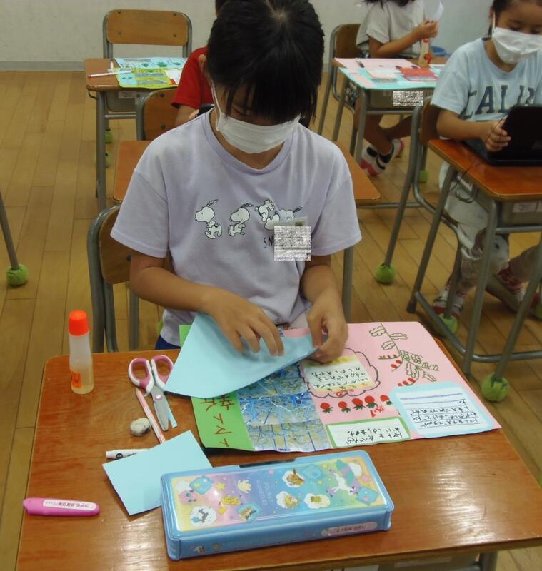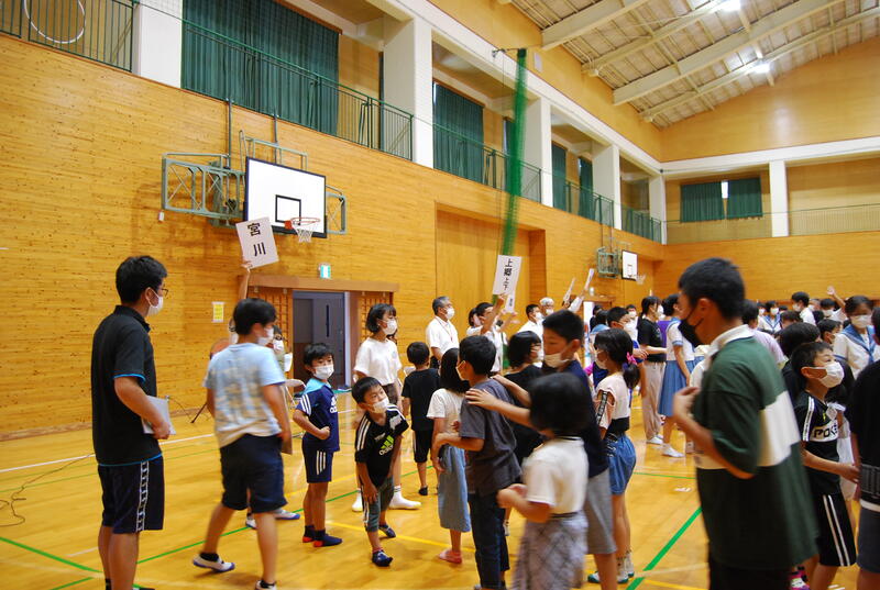 小学4年生、すごろくを楽しみながら夏休みの思い出を話しました。