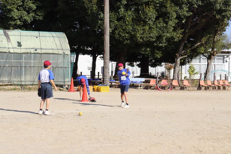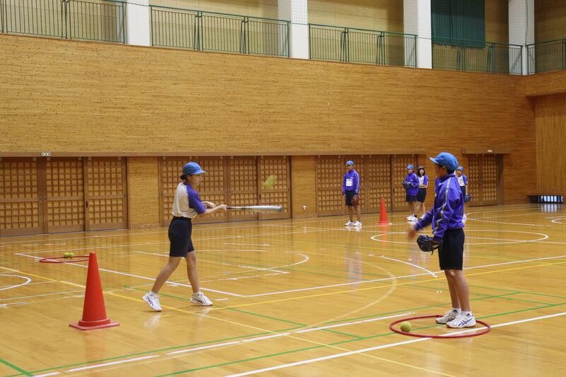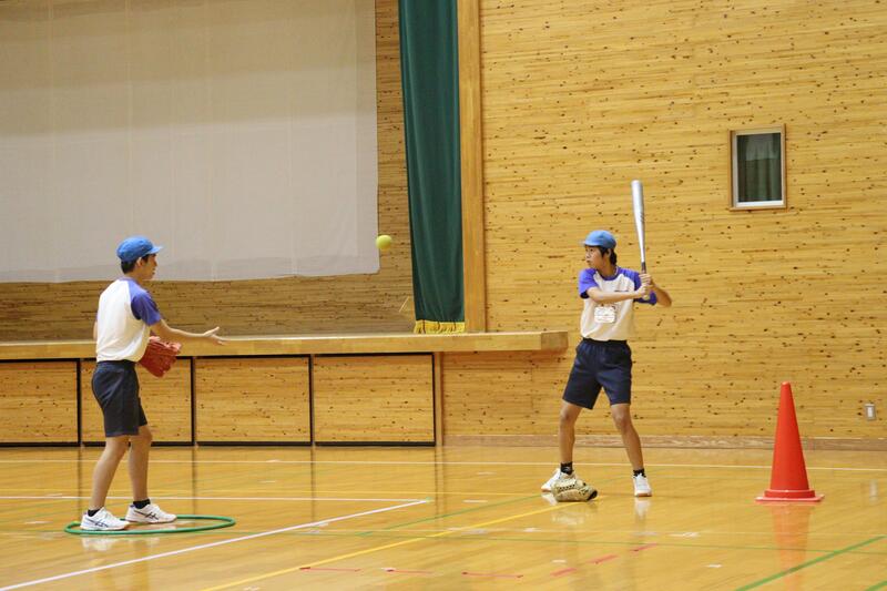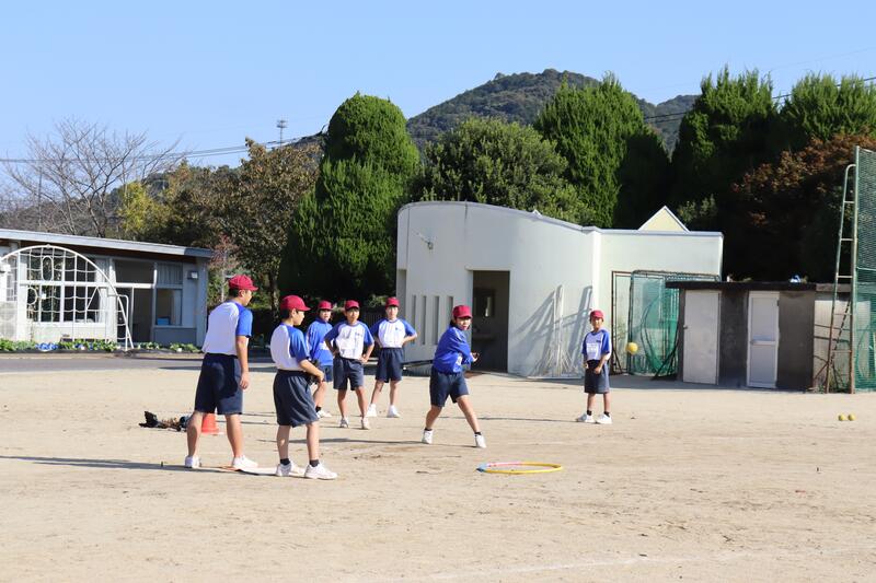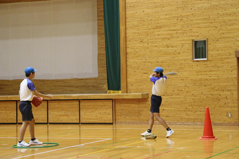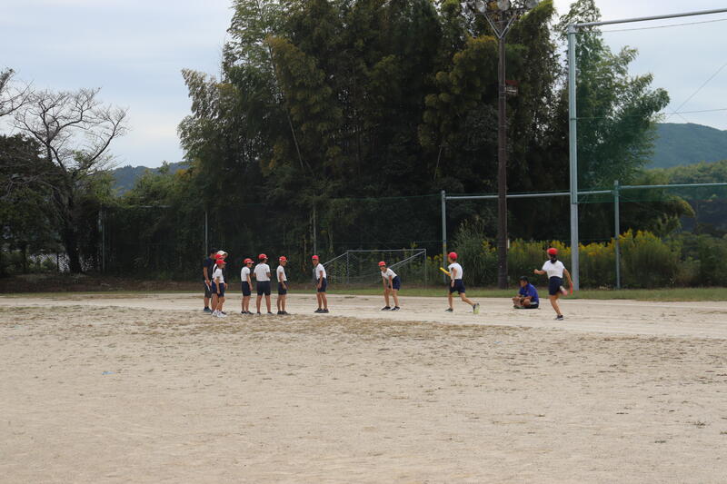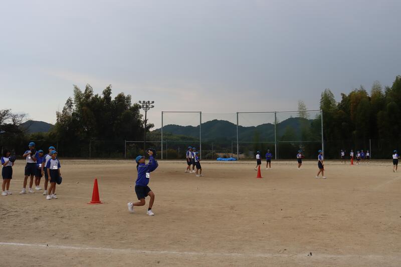中学1年生は、体育でソフトボールをしていました。野球部が積極的にリーダーシップをとっていて頼もしかったです。みんななかなか上手で驚きました。これからどんどん上達することでしょう。後半は簡単なルールを設けてゲームを楽しみました。