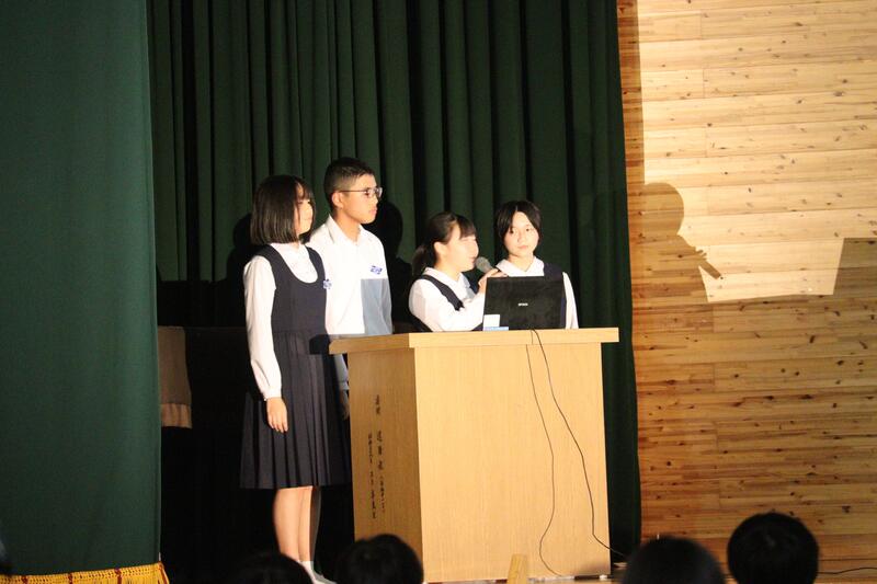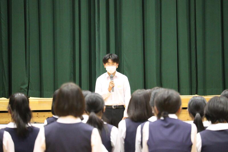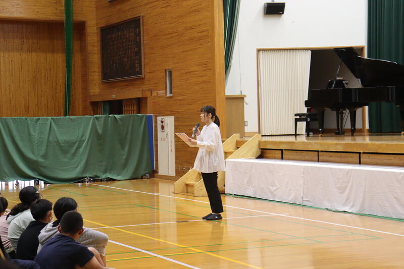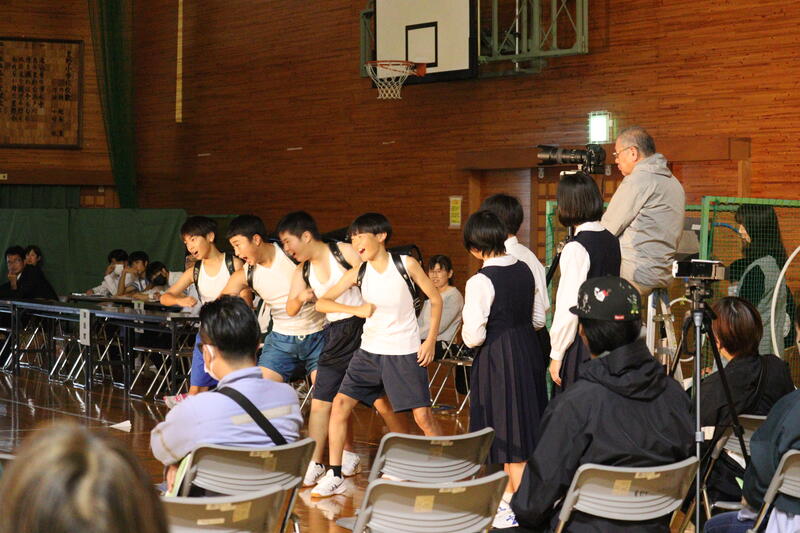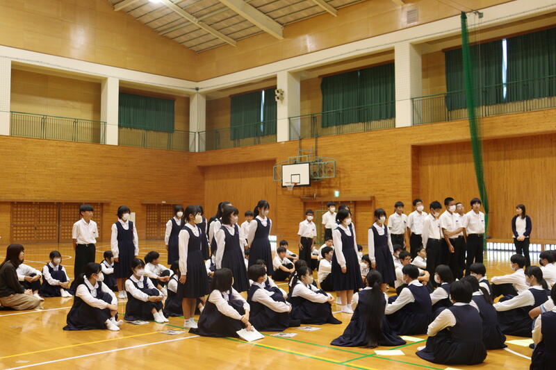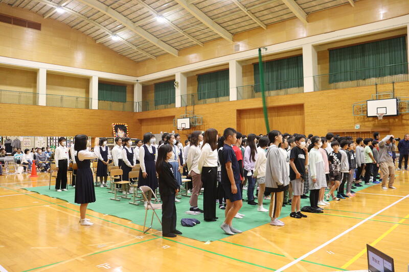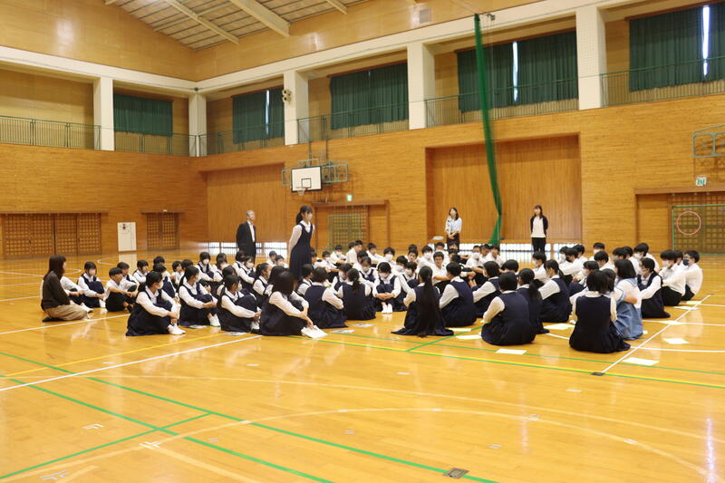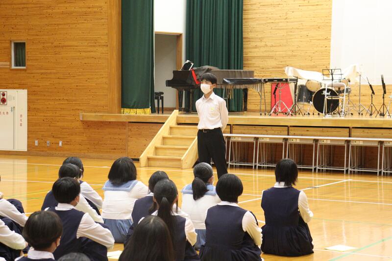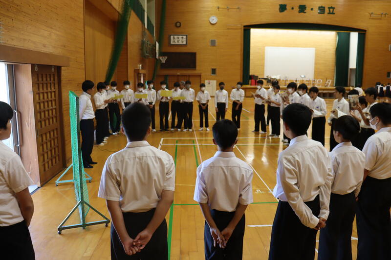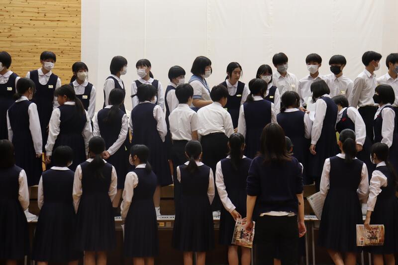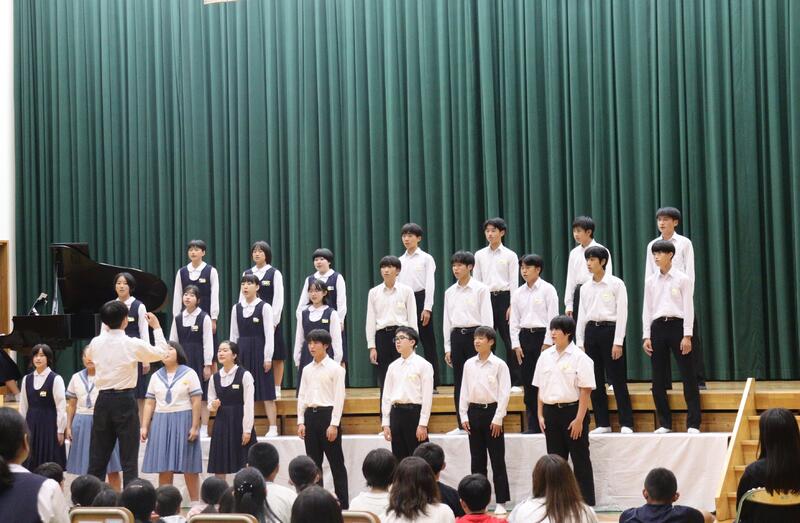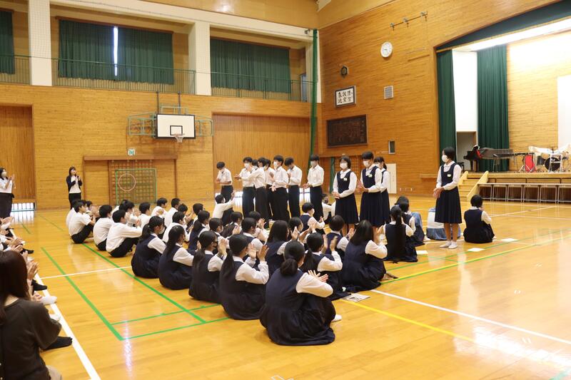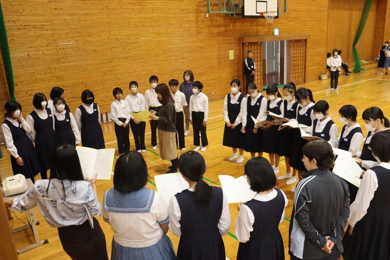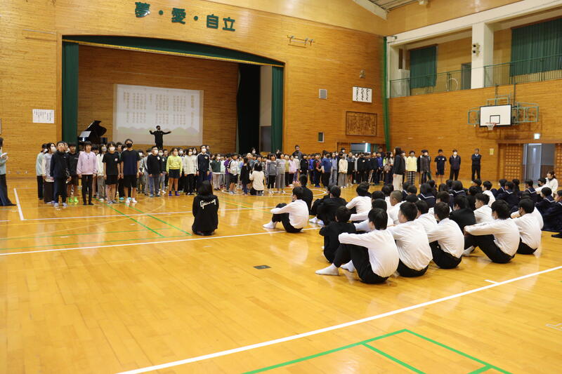 報告会の後、合唱コンクールに向けて、全校音楽を行いました。今年度は全校合唱を行います。曲は「ふるさと」。生徒の歌声が体育館にあふれ、素敵な時間となりました。