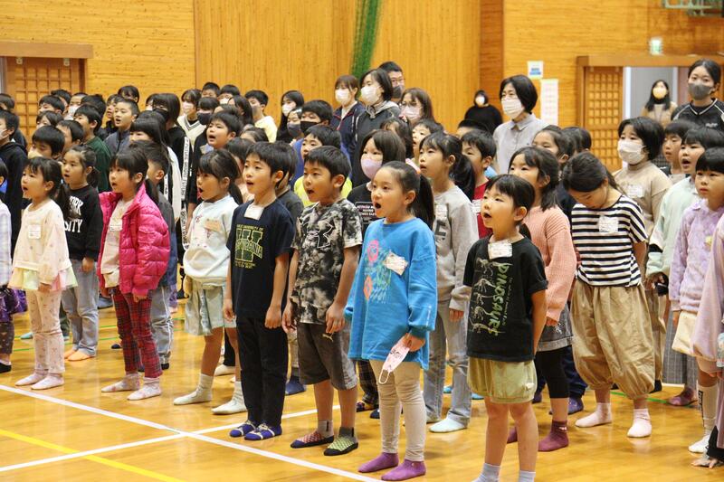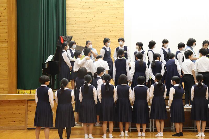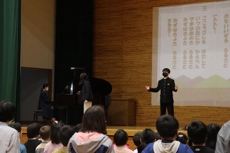 豊野町の風景を思い浮かべながら歌いました。感染症予防の観点から、ここ数年は学校で「歌うこと」ができませんでした。このように、全員で声を合わせること、心を合わせること、本当に素晴らしいことです。感動して涙が出ました。