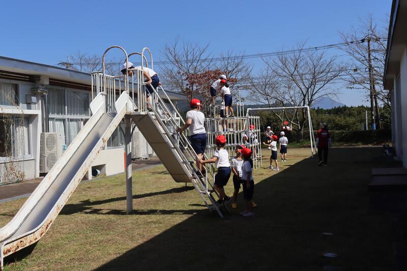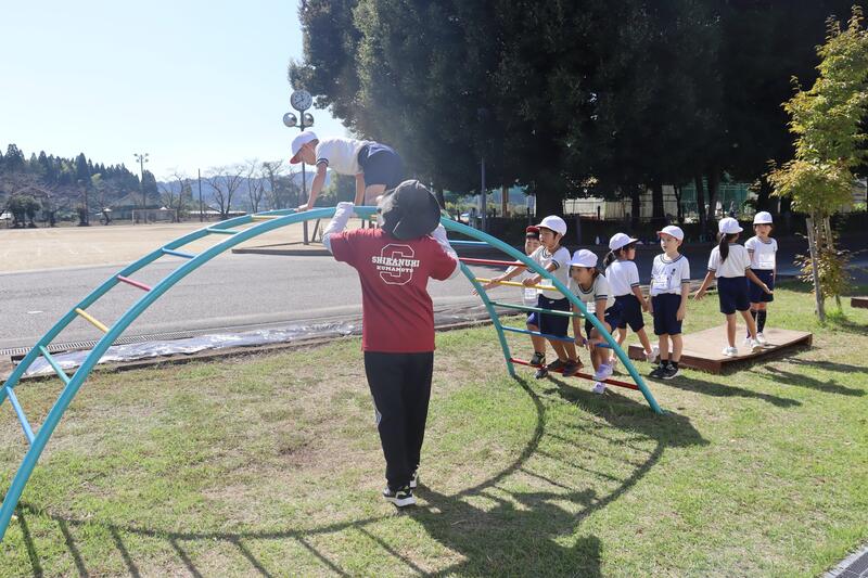 小学1年生は、体育でした!遊具をつかって、体を動かしていました。