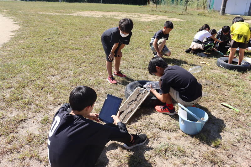 小学5年生は、理科で「流れる水の働き」の実験を行っていました。