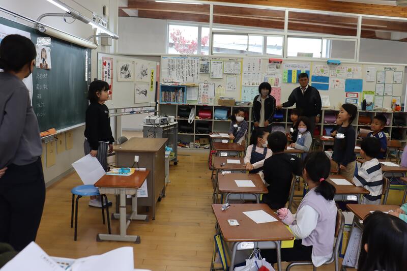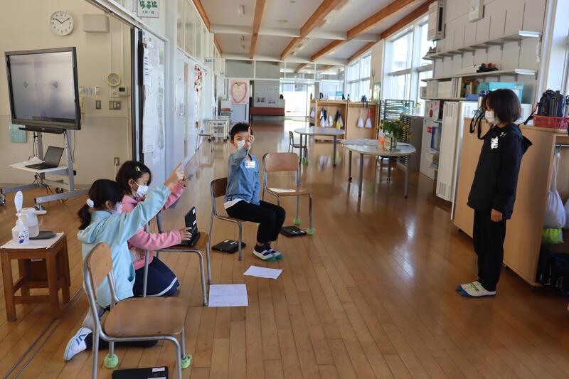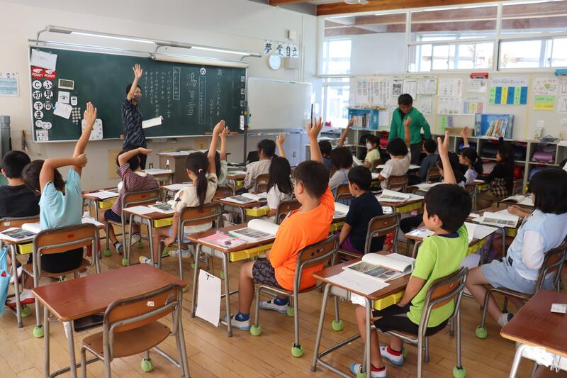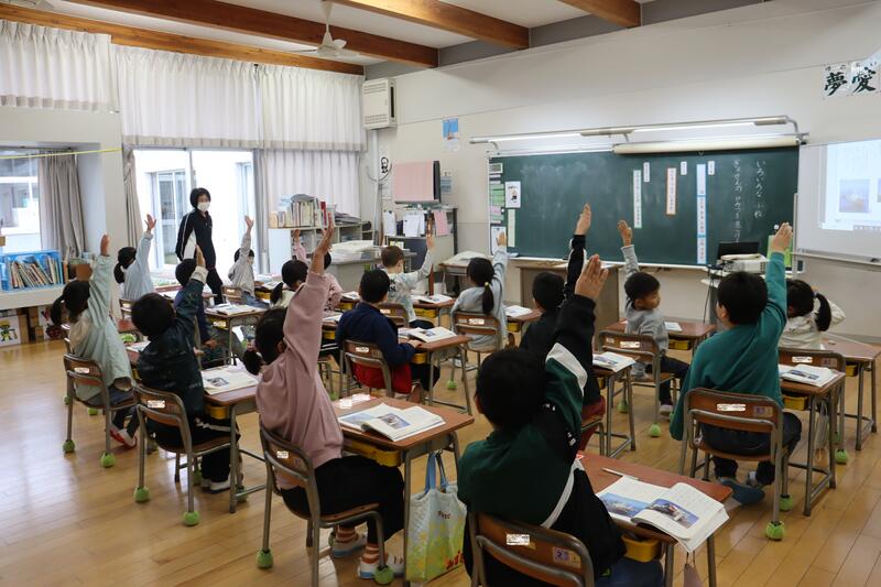 小学2年生の国語の授業です。手の挙げ方が上手!姿勢がとてもいいですね!