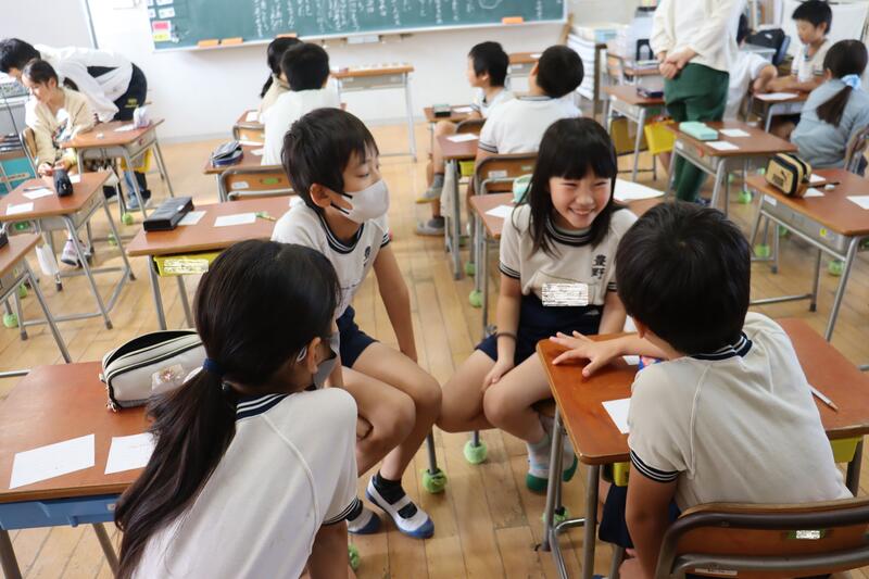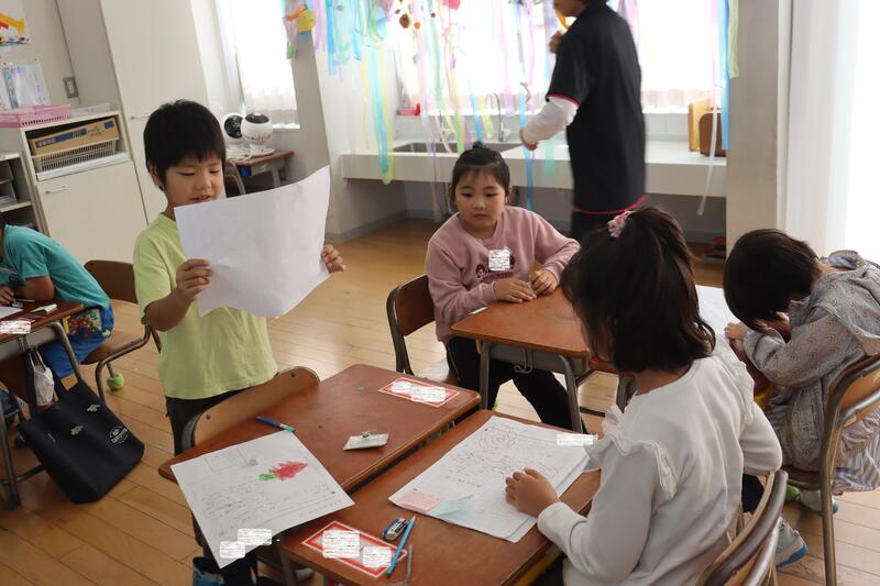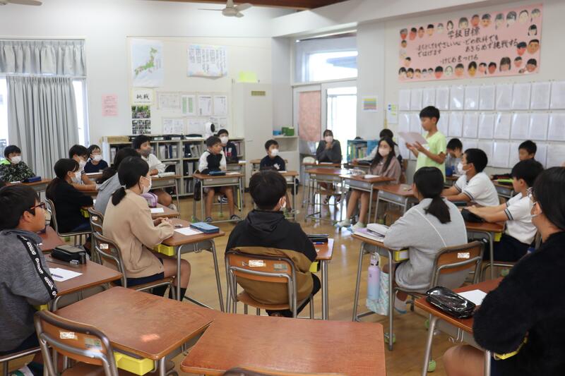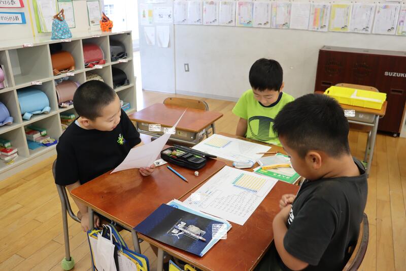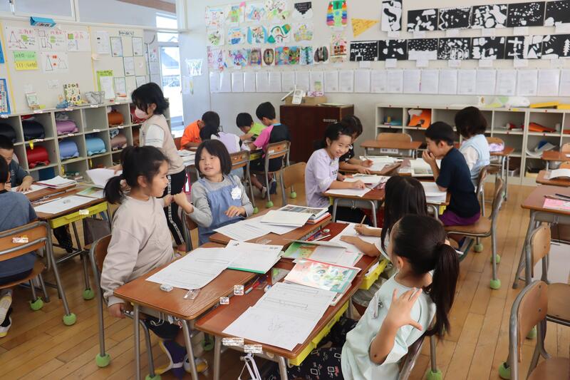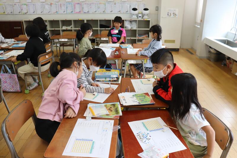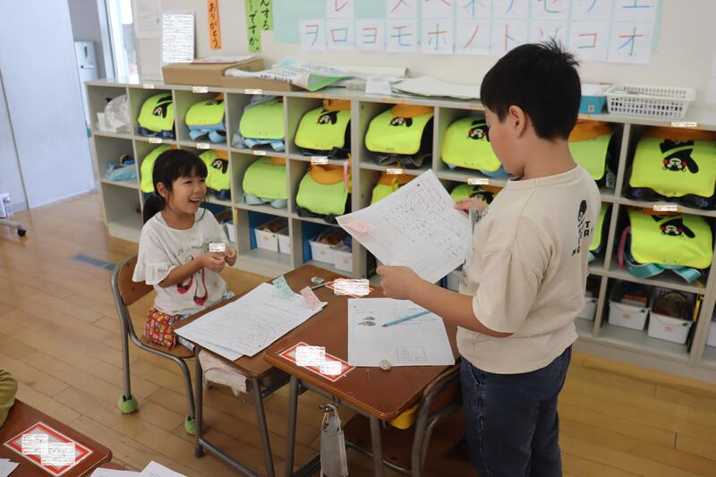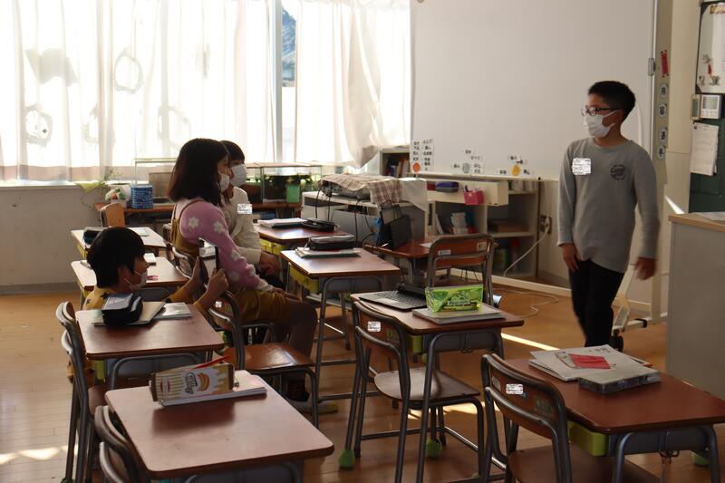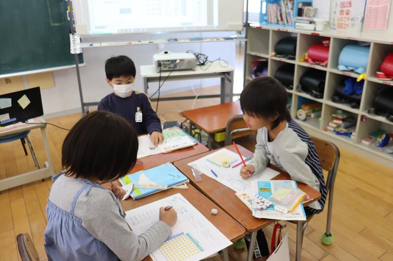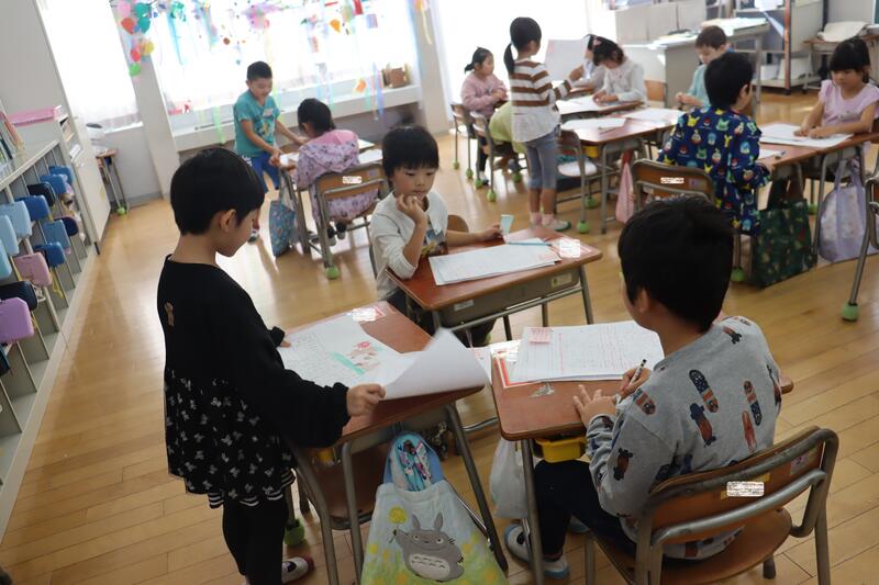 小学1年生は、国語で書いた作文をグループごとに発表していました。発表も聞き方もとっても上手でした!