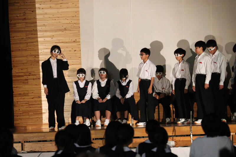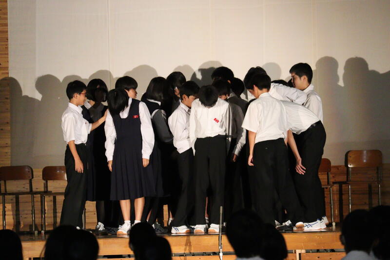 3年生らしい、しっとりと心に沁みる内容でした。3年生も、2回目の学習成果発表会、初めての劇への挑戦ということでしたが、演技・構成ともにレベルの高い仕上がりで、最高学年としての実力を見せてくれました。「幸せは自分で作り出すもの」この劇のように、中学校を卒業しても、お互いに支え合い、つながり合いながら、困難に立ち向かってほしいと思いました。