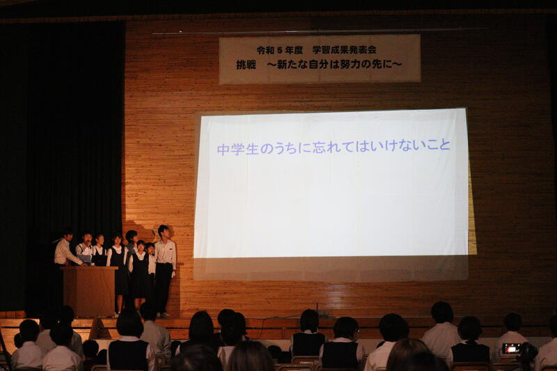 学習成果発表会のテーマ「挑戦~新たな自分は努力の先に~」のとおり、生徒たちの新たな一面をたくさん見ることができました。ご多用の中、たくさんの方に参観いただきまして、本当にありがとうございました!子どもたちの「挑戦」はこれからも続きます。引き続き、あたたかく見守っていただきますようお願いいたします。