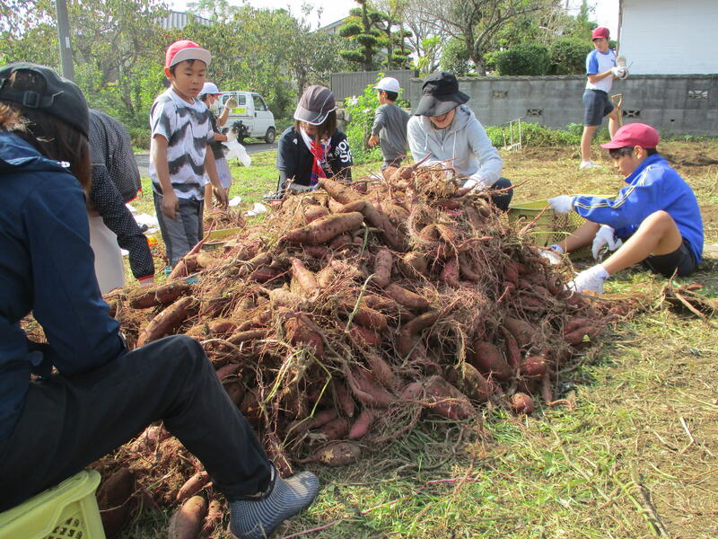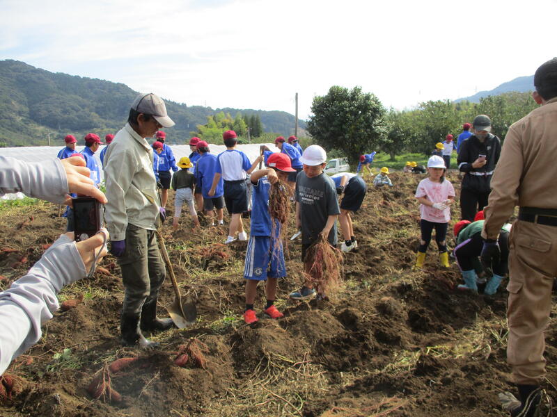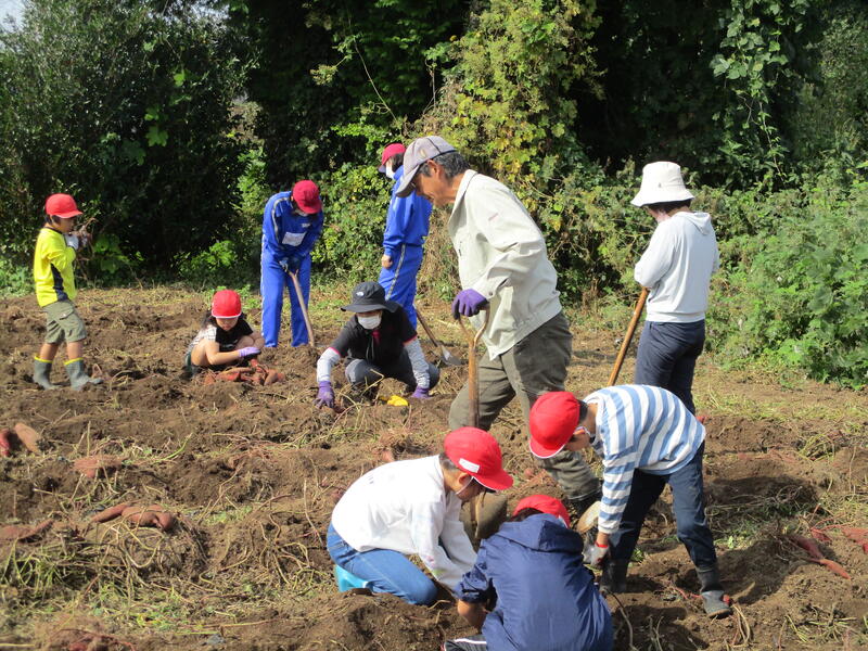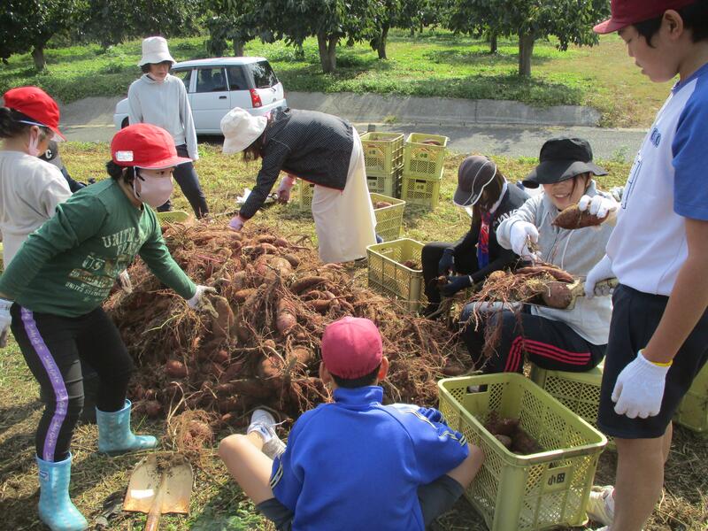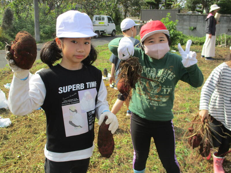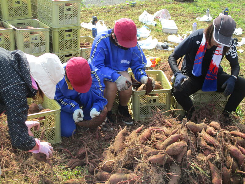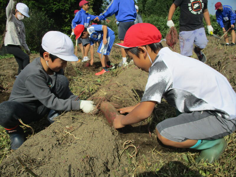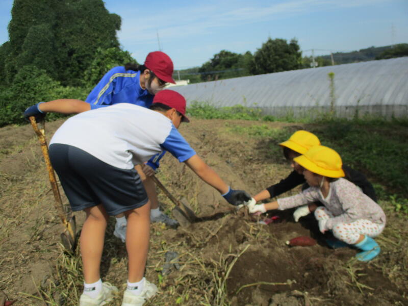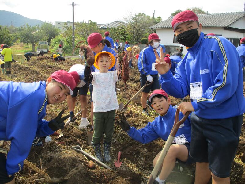 今年度も、小1・小2・中3が合同でいもほりを行いました。お天気もよく、さわやかな秋空のもと、みんなでさつまいもを収穫しました。農業委員さんには、土地の確保、土づくり、苗植えから収穫まで、本当にお世話になりました!おかげさまで、今年度も豊作でした!地域の方のご協力により、貴重な体験活動を行うことができ、子どもたちは本当に幸せです。地域のみなさまに心から感謝申し上げます。