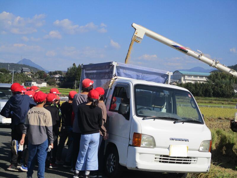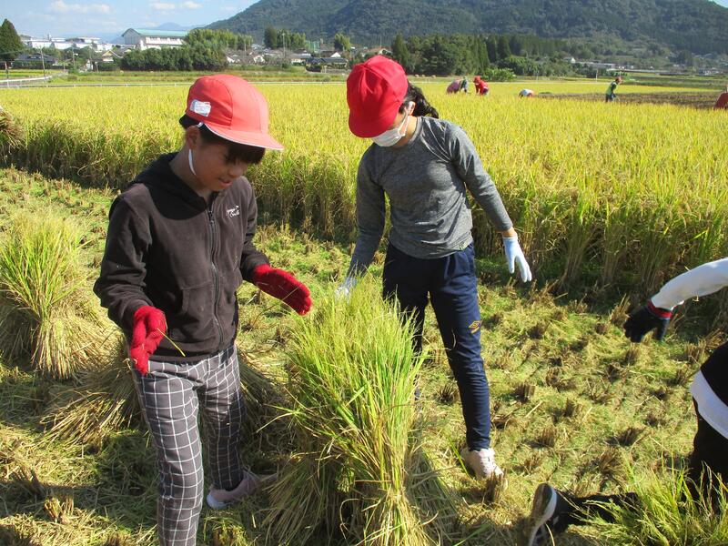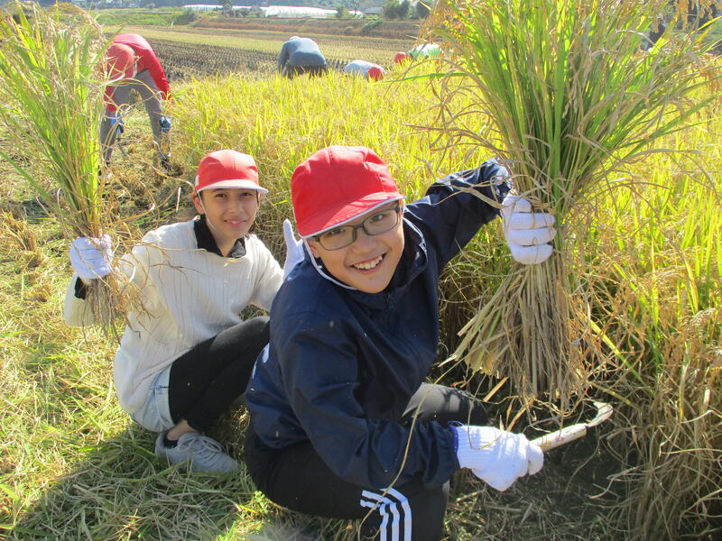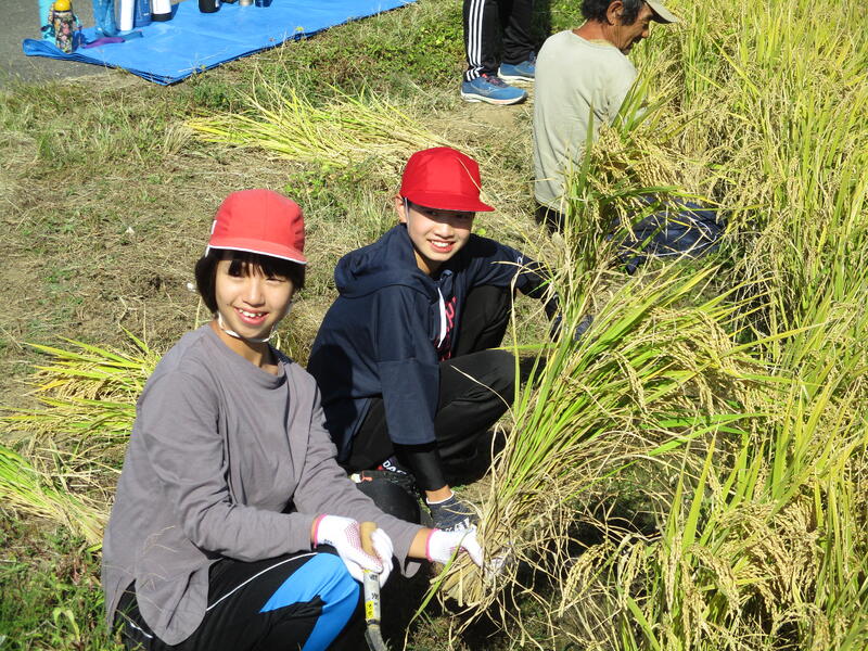 小学5年生は、稲刈りでした!お天気がよくて本当によかったです。JA青壮年部のみなさまには、苗作りから水田の準備、夏の水の管理など、大変お世話になりました!おかげさまで、今年も豊作!子どもたちは大喜びでした!先日のいもほりもそうですが、地域の方々のたくさんのご協力があり、さまざまな体験活動を実施できる本校は、とても恵まれています。子どもたちは本当に幸せですね。地域のみなさま、いつも本当にありがとうございます!
