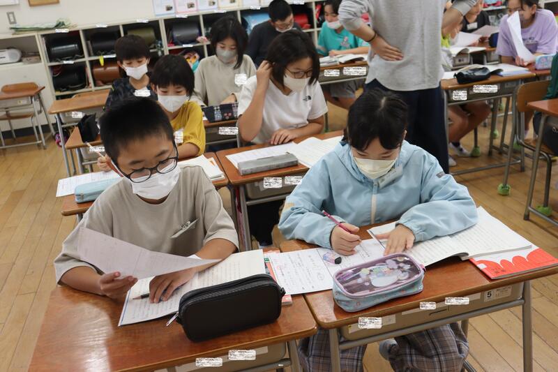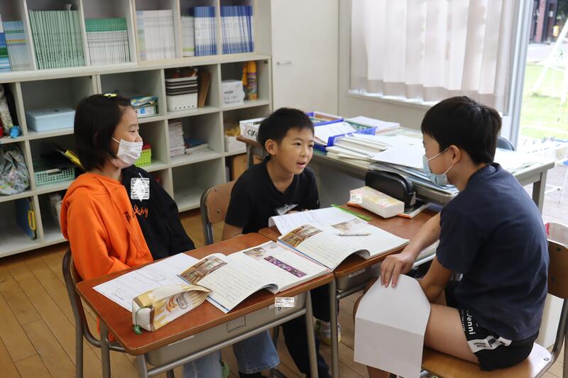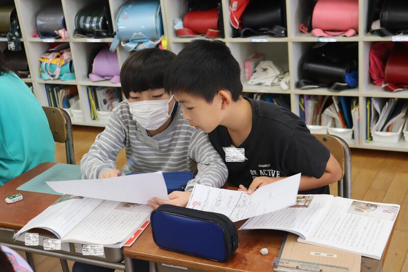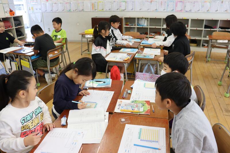 小学4年生は、国語で、「和」のよさと「洋」のよさについて、自分の考えをまとめていました。お互いに意見を交換しながら、考えを深めていました。なんだか最近、とっても大人びた表情を見せるようになった4年生です。みんなどんどん成長しますね。
