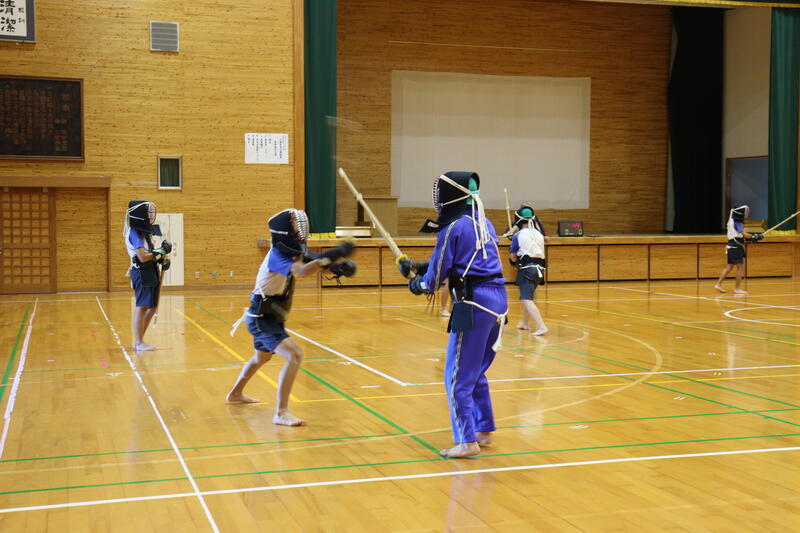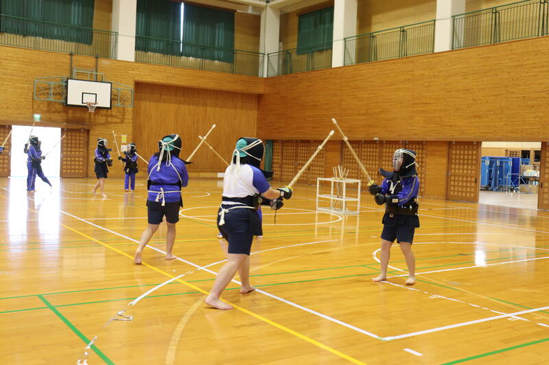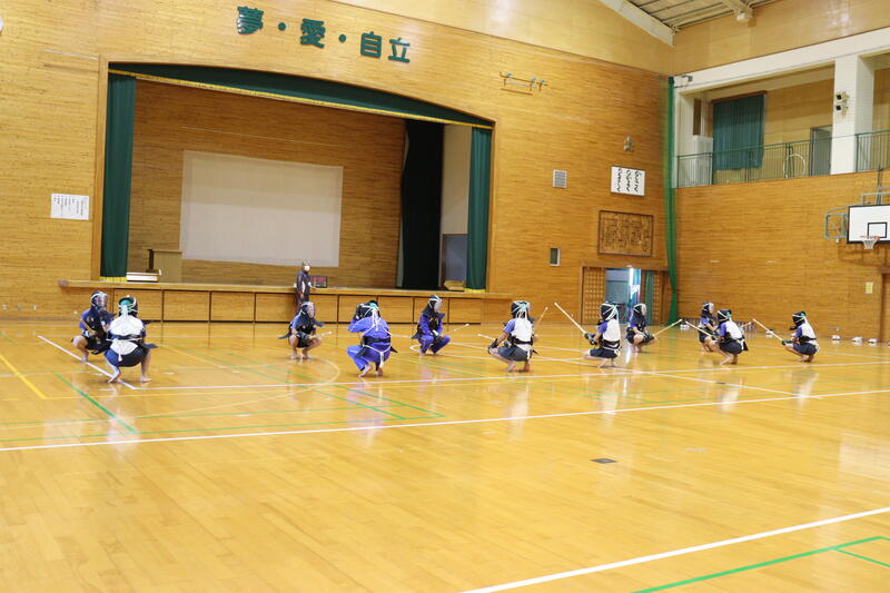 1時間目、体育館から勇ましい声が聞こえてきました。のぞいてみると、中学3年生が体育で剣道をしていました。防具をつけて、凛々しいです!